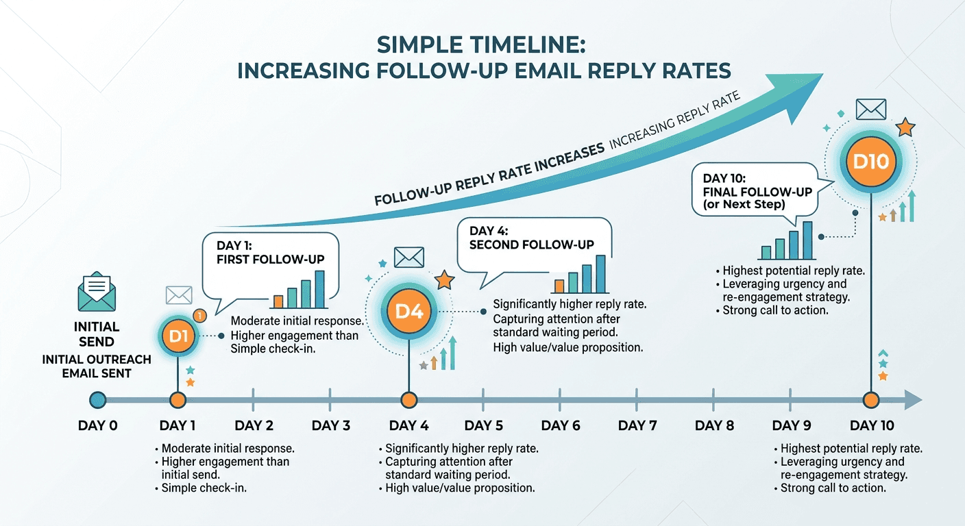 Follow-up facts | Research consistently shows most replies come from follow-up messages, not first contacts. The timing window closes fast. |