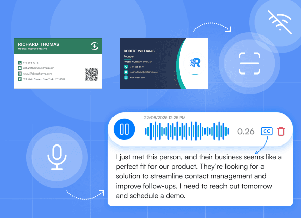 Use voice-to-text to record nuances like "Needs Q3 implementation" or "Concerns about competitor X's pricing." Habsy attaches the audio and a searchable transcript to the lead, ensuring the follow-up is relevant.